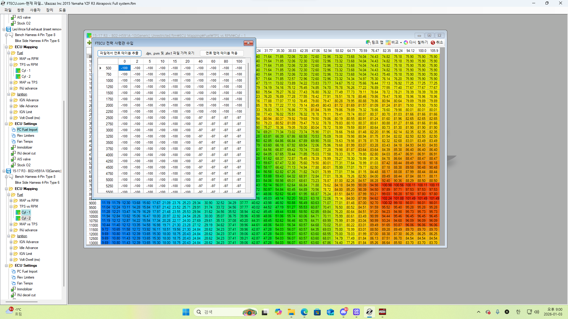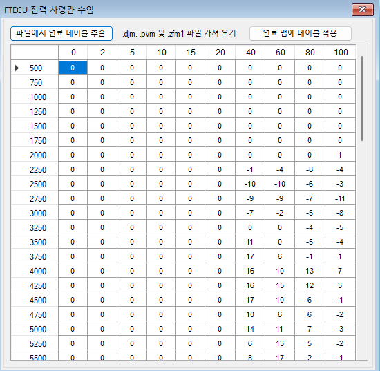 pc 맵 가져오기 버튼이 활성화 되었더라도 이렇게 오류가 발생할 수 있습니다 저는 pcv 앱 자체에서 이것을 활성화가 되는 다른 pcv 파일에 연료 보정값을 붙여넣기 하는 것으로 해결하였습니다 :) rpm 범위가 넓은 r6 pcv 파일에 r3 pcv 보정값을 복사 붙여넣기 하여 불러오면 오류가 생기지않고 잘 불러와집니다